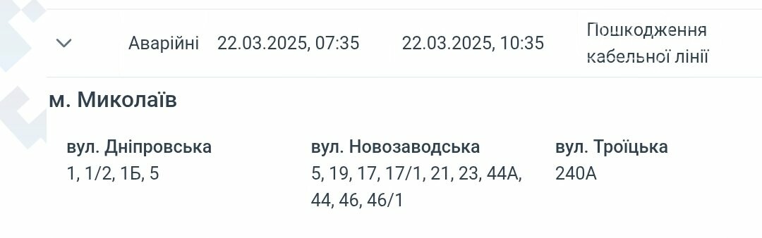 22 марта утром в Николаеве произошло аварийное отключение электроэнергии .