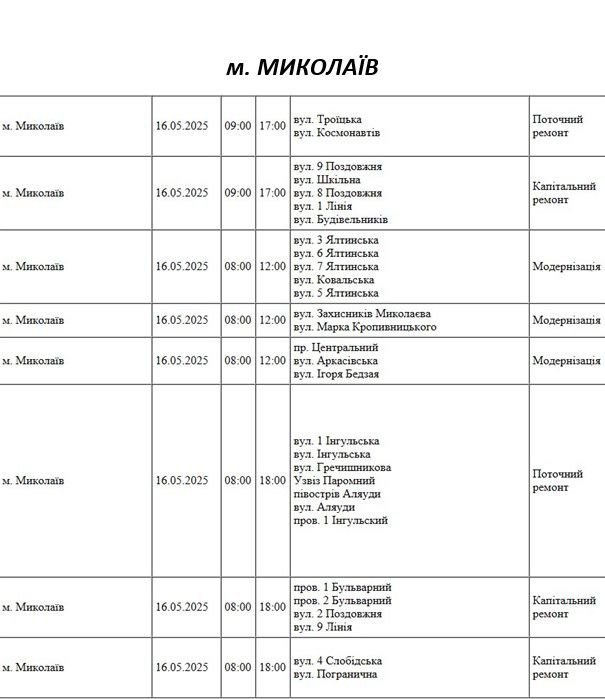 Завтра, 16 мая, николаевцам следует приготовиться к плановым отключениям света. Как сообщается на сайте "Николаевоблэнерго" , ряд домов в городе из-за капитального и текущего ремонта, а также работы по реконструкции, модернизации и техническому обслуживанию временно останется без электроэнергии.