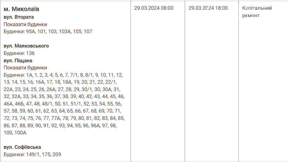 У п'ятницю, 29 березня, у Миколаєві будуть проходити планові відключення електроенергії.
