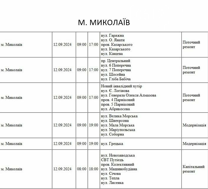 12 сентября в Николаеве пройдут плановыеотключения электроэнергии.