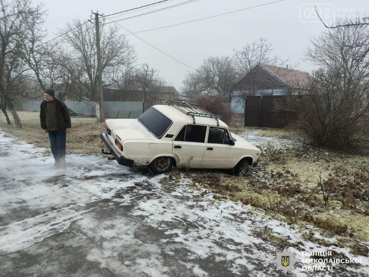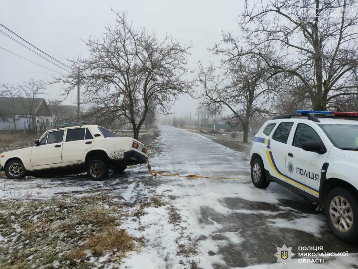 В Новобугской общине Николаевской области легковой автомобиль съехал в кювет из-за скользкого дорожного покрытия. В помощь водителю оперативно прибыл полицейский офицер общины, который во время патрулирования обнаружил транспортное средство на обочине.