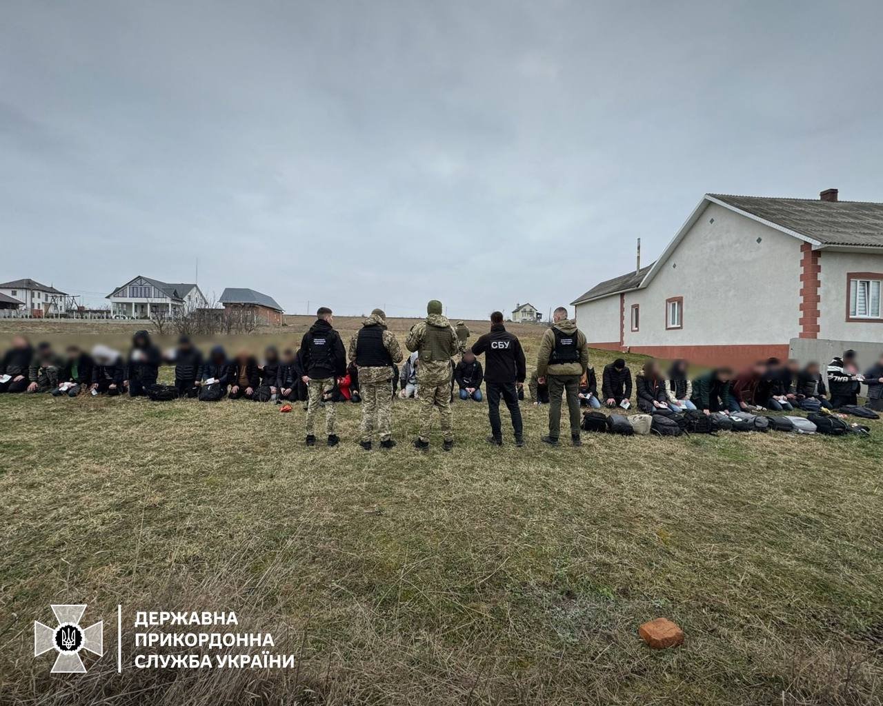 Біля кордону з Румунією прикордонники спільно з СБУ затримали мікроавтобус з 34 чоловіками у вантажному відсіку.