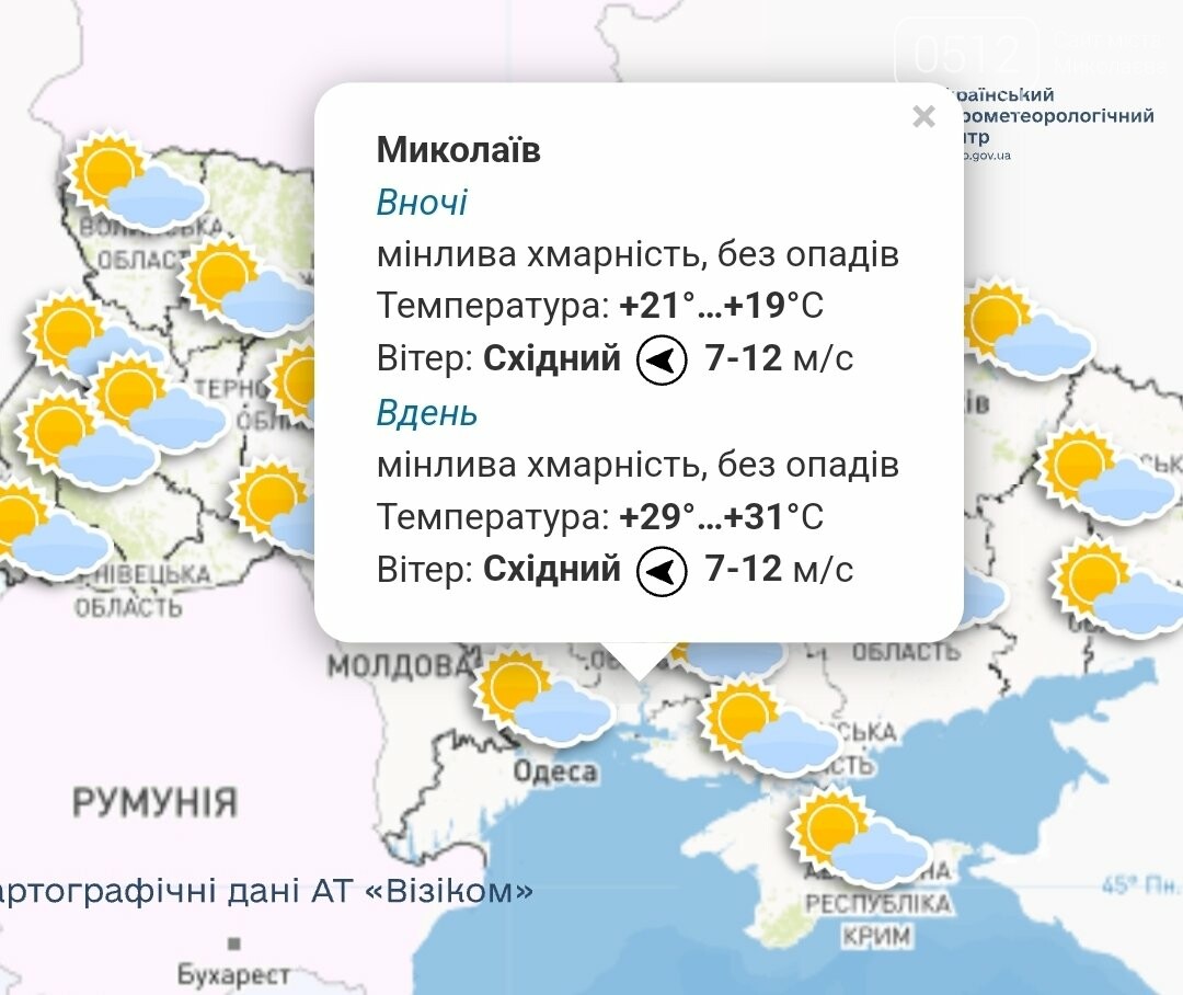 В Укргидрометцентре пишут, что метеорологических предупреждений Николаевской области нет. В течение дня прогнозируется до +31, переменная облачность.