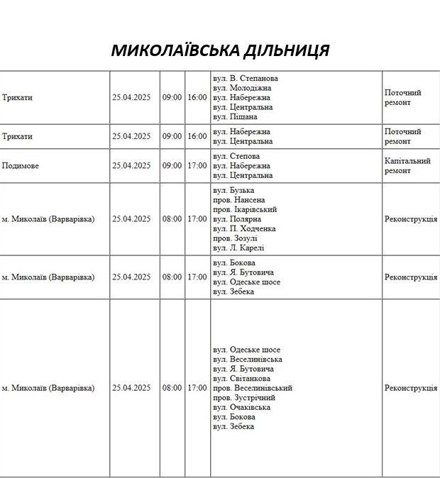 В Николаеве будут производить плановые отключения электроэнергии.