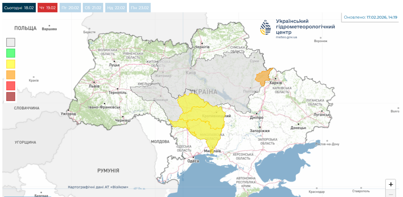 По прогнозам гидрологов, 17 – 18 февраля в результате прохождения воды по руслу на реке Южный Буг и отдельных его притоках (Черкасская, Кировоградская, Николаевская, Одесская области) ожидается повышение уровней воды на 0,2–1,0 м над текущими показателями. Речь идет, в частности, о реках: