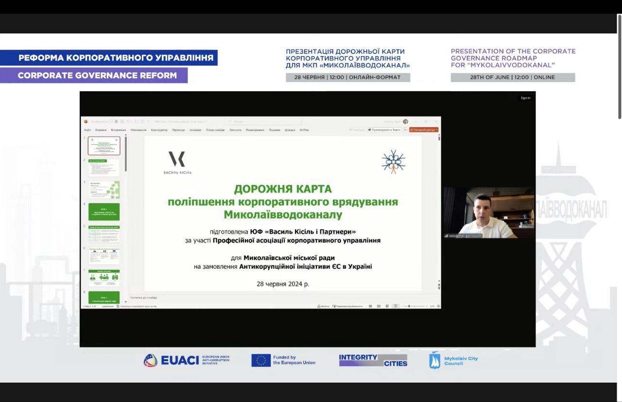 Недавно презентовали Дорожную карту внедрения корпоративного управления на КП "Николаевводоканал", которую подготовили специалисты юридической фирмы "Василь Кісіль та партнери" при поддержке Антикоррупционной инициативы ЕС в Украине.
