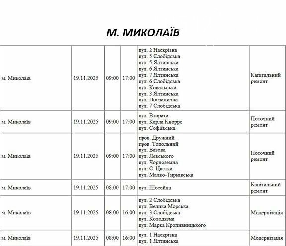 19 ноября в Николаеве придут плановые отключения электроэнергии.