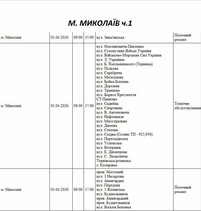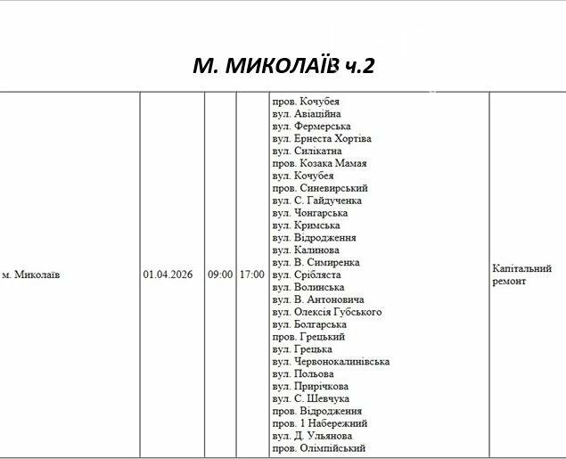 Плановые отключения: где в среду в Николаеве не будет электроэнергии, — ФОТО