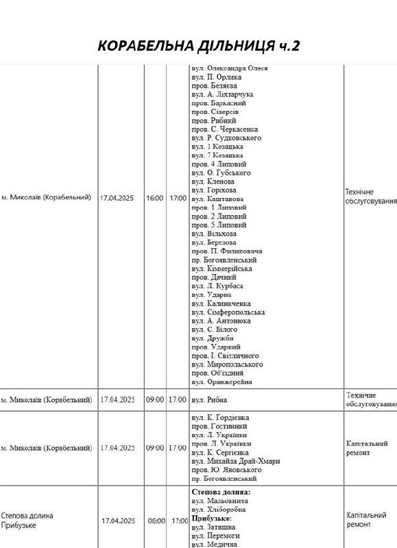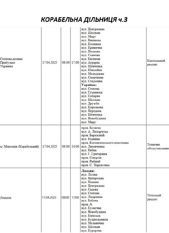 Завтра, 17 апреля, николаевцам следует приготовиться к плановым отключениям света. Как сообщается на сайте "Николаевоблэнерго", ряд домов в городе из-за капитального и текущего ремонта, а также работы по реконструкции, модернизации и техническому обслуживанию временно останется без электроэнергии.