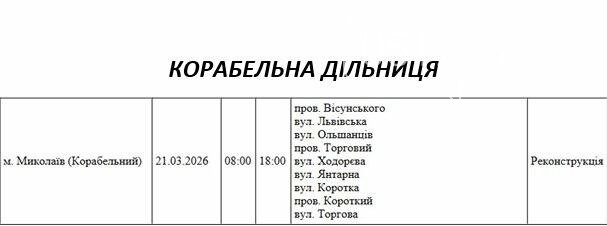 21 марта в Николаеве пройдут плановые отключения электроэнергии.