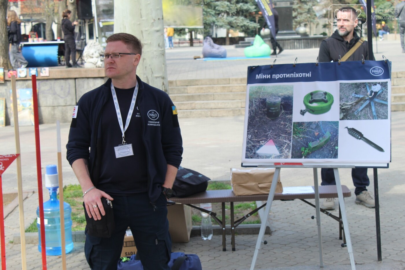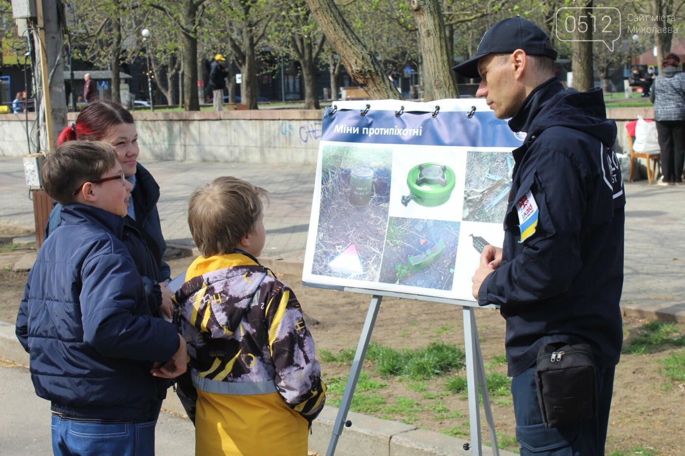 Так, 4 апреля на улице Соборной в Николаеве состоялось познавательное мероприятие, во время которого представители ГСЧС рассказывали прохожим о минной безопасности. Участникам объясняли, как поступать в случае обнаружения опасных предметов и почему важно не приближаться к ним.
