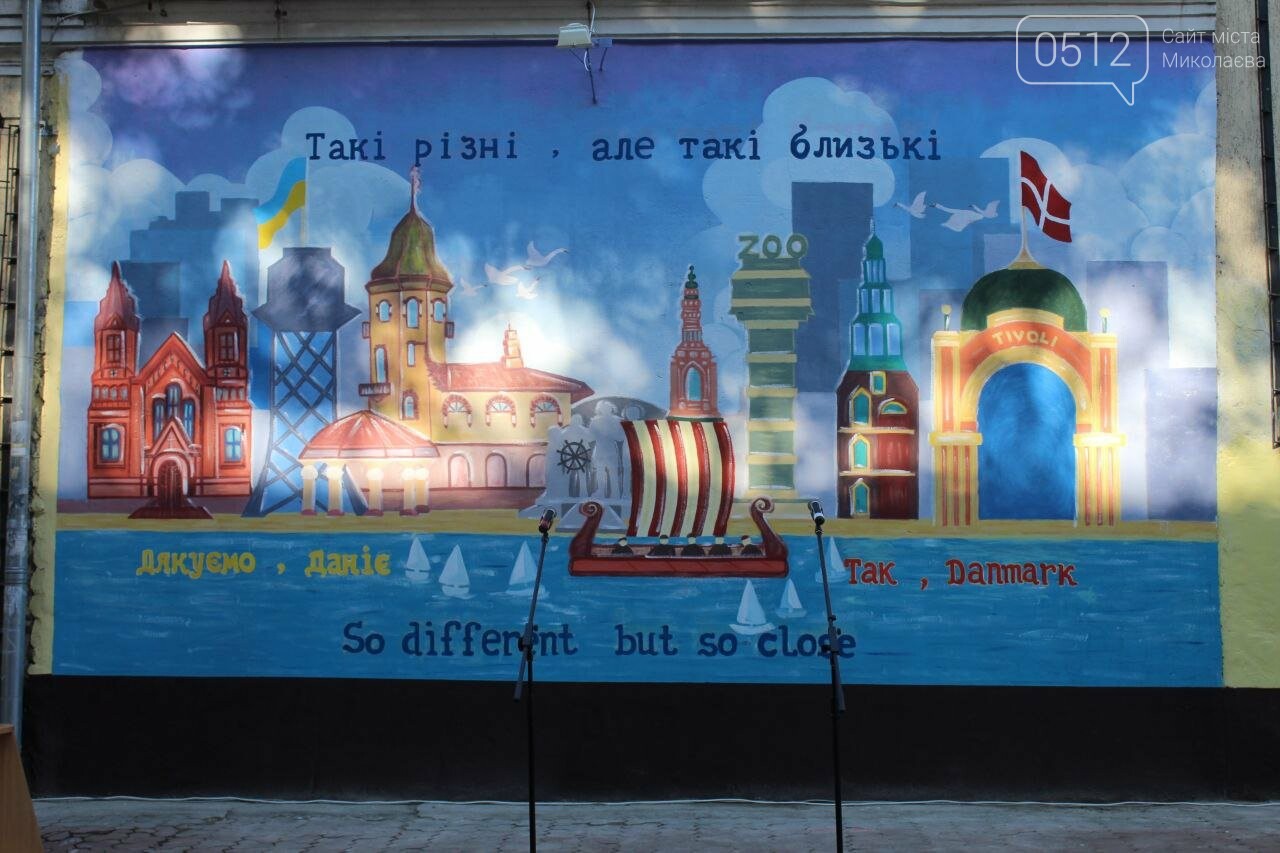 Сегодня, 14 сентября, в Николаеве торжественно открыли новый мурал "Такие разные, но такие близкие". Его создали в знак благодарности датскому народу.