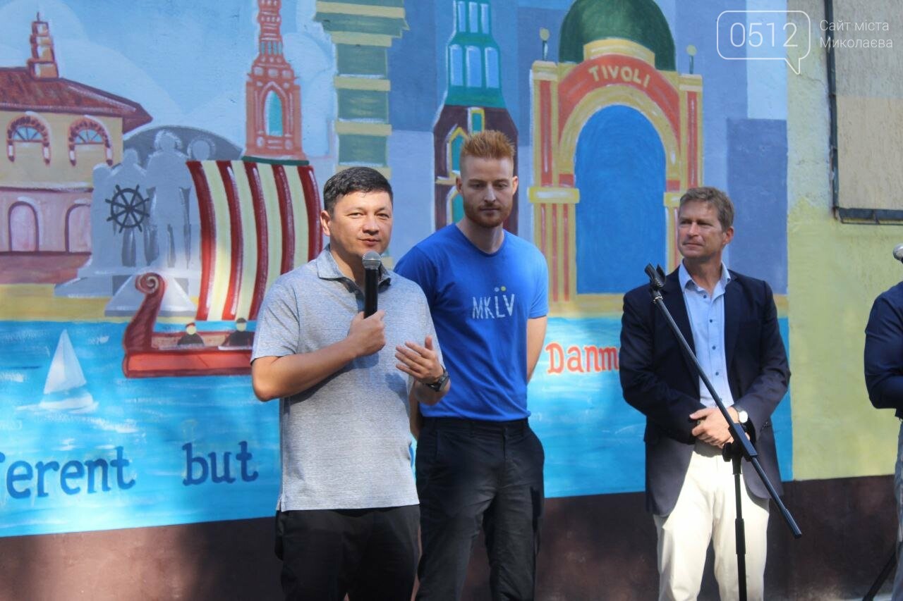 — Сегодня мы вместе с нашими коллегами из Дании, Николаевский городской совет, Николаевская ОВА пришли к символическому мурлу, который показывает, что мы разные, но очень родные. Эта ужасная война принесла нам, к сожалению, много горя, но и принесла таких замечательных друзей и партнеров как Королевство Дании. Этот мурал — это напоминание, что Дания нас поддерживает, а мы им благодарны, — отметил мэр Николаева Александр Сенкевич.