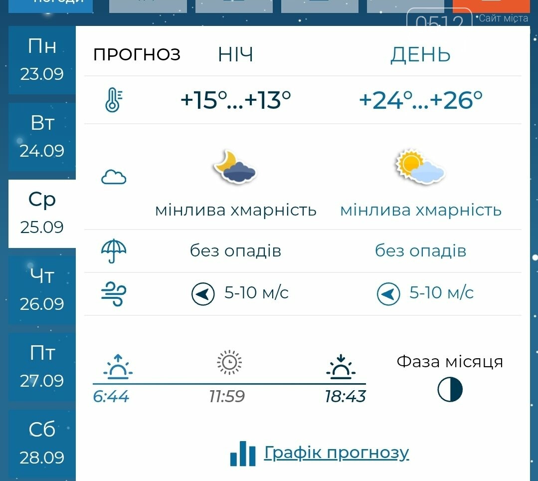 В среду, 25 сентября, в Николаеве будет так же тепло как и в прошлые дни.