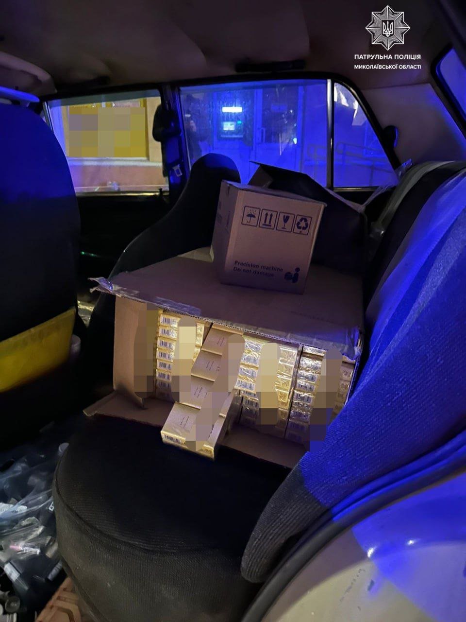 Як повідомляє патрульна поліція Миколаїської області, близько 21-ї години, інспектори зупинили автомобіль ВАЗ на проспекті Центральному за порушення ПДР. Під час огляду автівки патрульні виявили 488 пачок цигарок без акцизних наліпок.