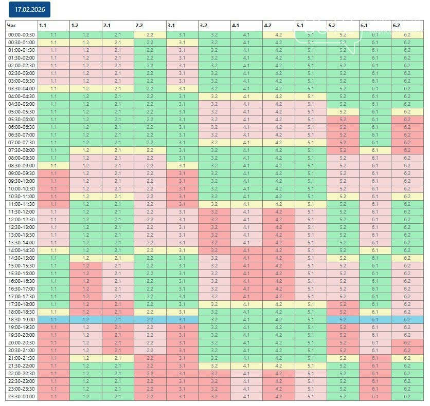 18:50 По состоянию на 18:30 график почасовых отключений (ГПО) обновлен до конца текущих суток в соответствии с распоряжением НЭК "Укрэнерго".