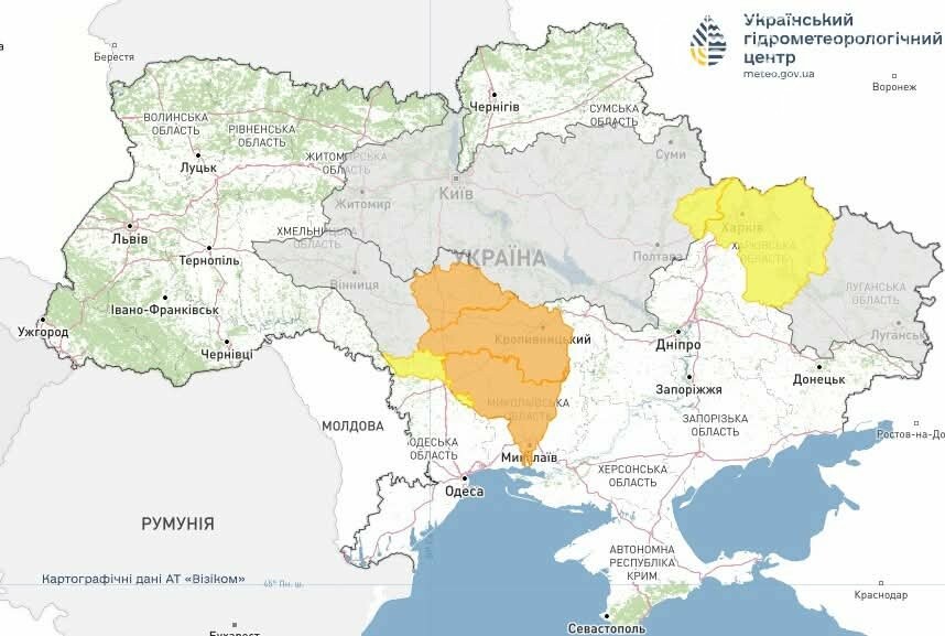 Под угрозой отдельные территории Звенигородского района Черкасской области, Головановского района Кировоградщины и Первомайского района Николаевской области.