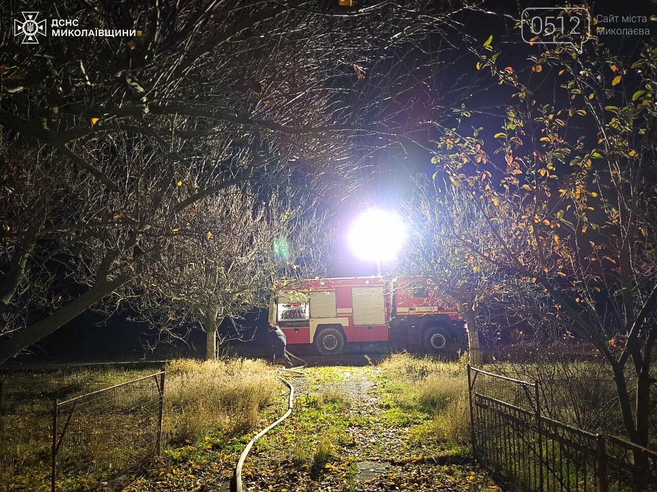 Так, ночью в г. Снигиревка возникло возгорание летней кухни и гаража на территории частного домовладения. Пожарные потушили пожар площадью 70 кв. м и предотвратили распространение огня на близлежащие сооружения. На месте пожара обнаружено тело владельца дома. Причину возгорания выясняют специалисты.
