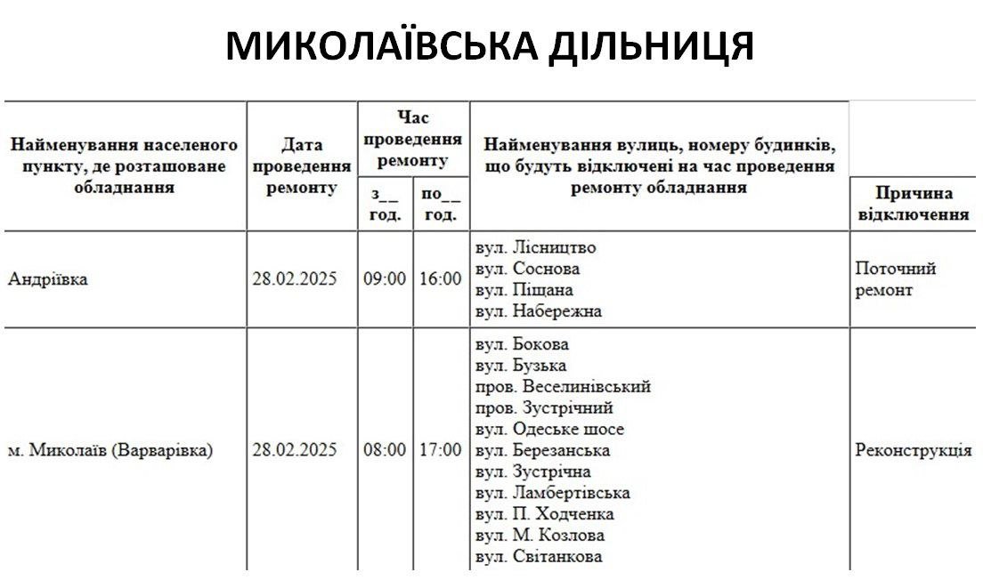 Завтра, 28 февраля, николаевцам следует приготовиться к отключениям света.