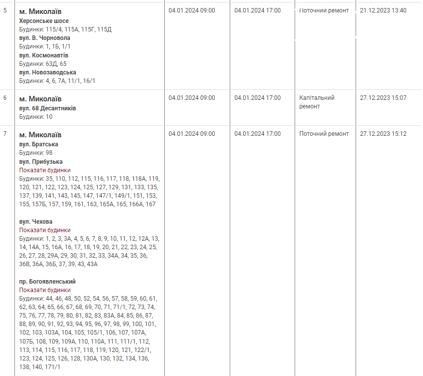 У четвер, 4 січня, по Миколаєву будуть проходити планові відключення електроенергії.