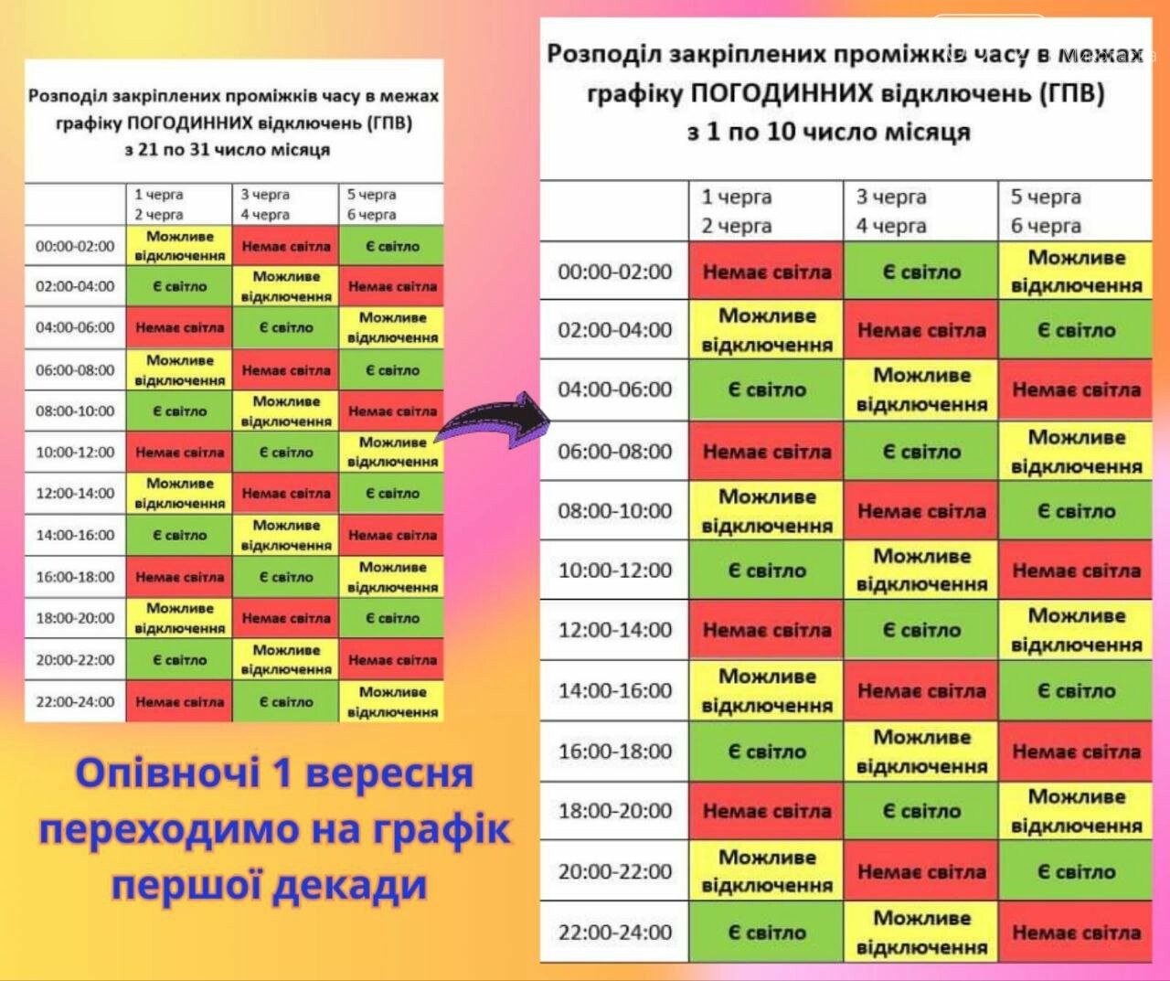 Расписание отключений очередей графика почасовых отключений (ГПО):
